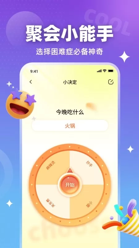 非常有趣的聚会游戏,可随机帮助你做出决定,从此和好友玩游戏更加方便