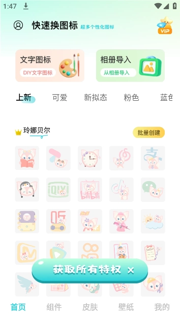 快速换图标,这款美化工具操作简单,能帮你快速更换图标,不仅提供了海量精美图标包,支持一键替换所有图标,还能让你自由自定义图标样式。除此之外,它还有丰富多样的键盘皮肤、创意桌面小部件以及精美壁纸供你选择,各种风格应有尽有,满足你的个性化需求。