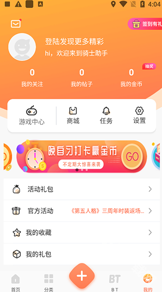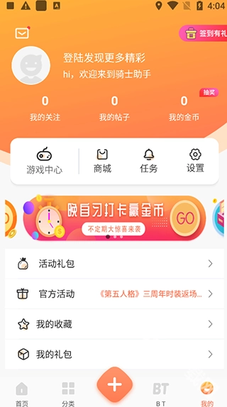 骑士助手是一款超实用的手机游戏平台,里面有海量优质资源,游戏品类相当齐全,还有不少精彩游戏推荐等你体验,能让玩家充分享受游戏乐趣。平台内设有游戏榜单,方便你发现当下热门佳作;更有边玩游戏边赚钱的福利,以及各类游戏礼包可供领取。这么实用的游戏平台,快来光速体验吧!