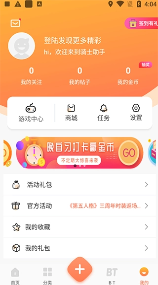 骑士助手是一款十分实用的手机游戏平台,汇聚了多种类型的游戏可供畅玩,还设有游戏榜单方便查看,能让你发现不少好玩的新游戏,应用内更有各类游戏礼包可领取,绝对是个超有趣的游戏平台,赶紧来体验吧!