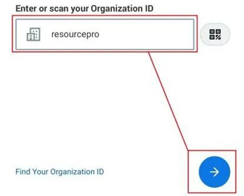 首次登录手机版应用程序时,需要输入组织标识代码(Organization ID)。