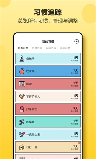 可以选择性记录用户的不同习惯,并且每个习惯功能都配备了记录功能。