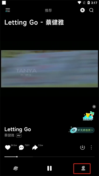 滑动屏幕即可查看到下一个音乐视频。