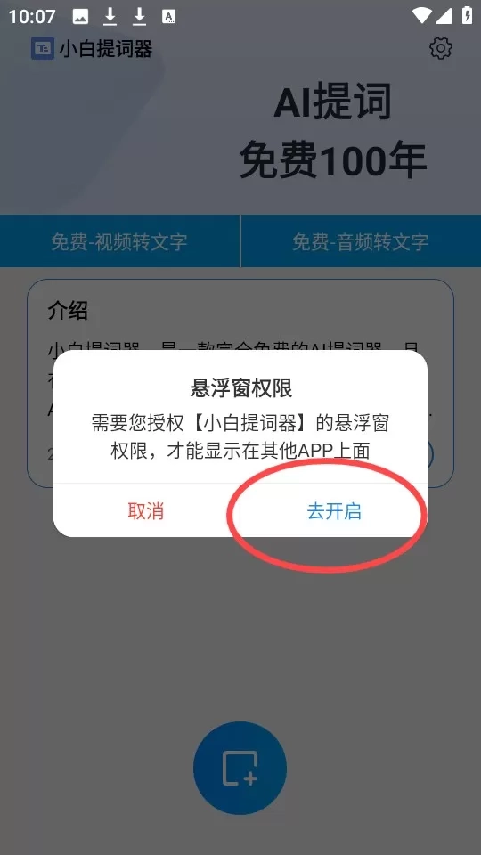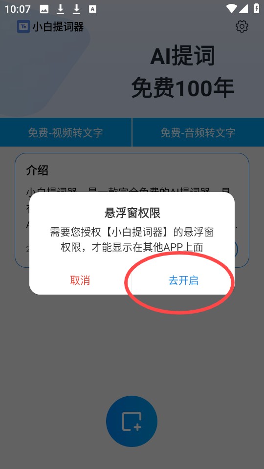 4、这里以“悬浮提词”为例,使用之前,需要开启悬浮窗权限。