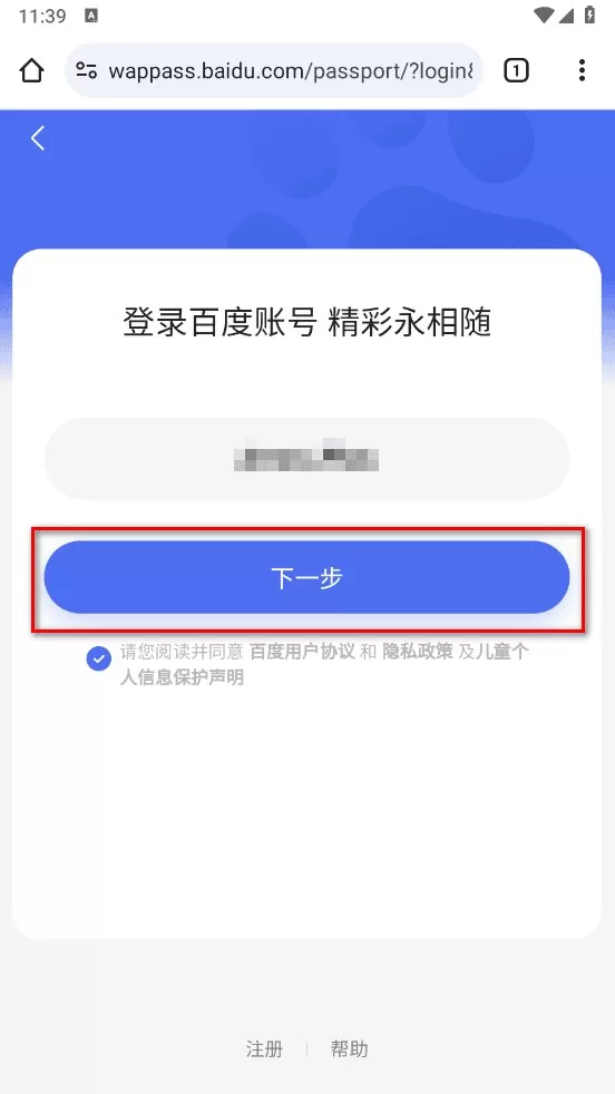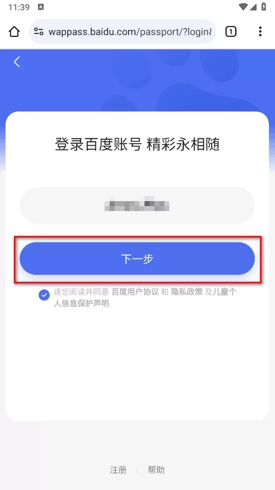 3、填入个人账号,勾选同意相关协议后,点击“下一步”。