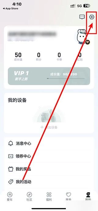 在设备上打开爱玛出行应用,点击界面里的【设置】选项,进入功能配置页面。