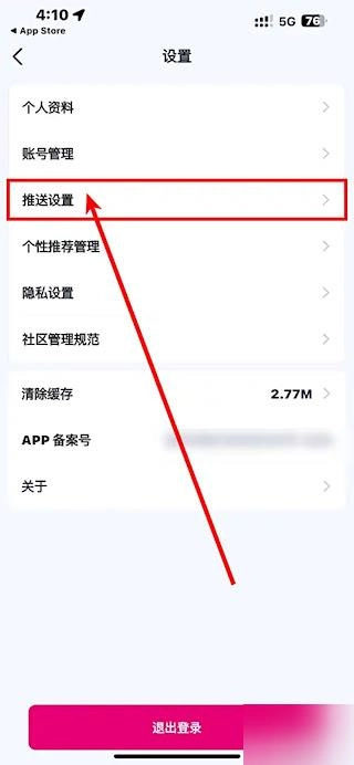 页面跳转至系统设置菜单后,找到并点选【推送设置】选项,即可对消息通知进行管理。