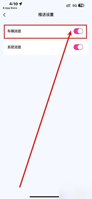 在推送管理界面中,找到【车辆消息】选项并开启其状态,即可完成全部配置流程。