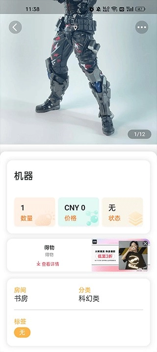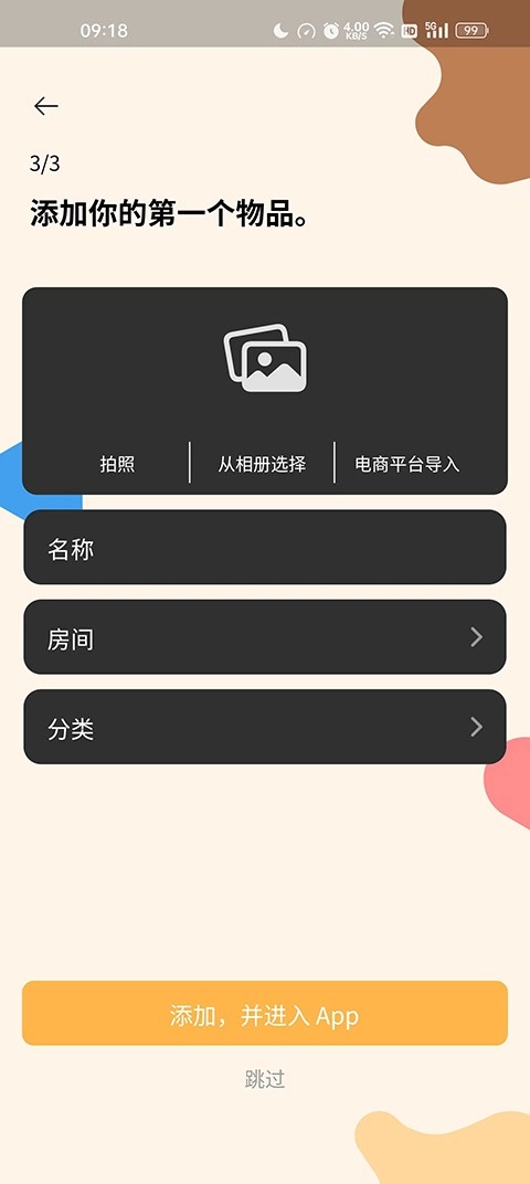 先给物品拍张照,接着依次填写物品的名称、所在房间和所属分类,最后点击添加物品就完成了。