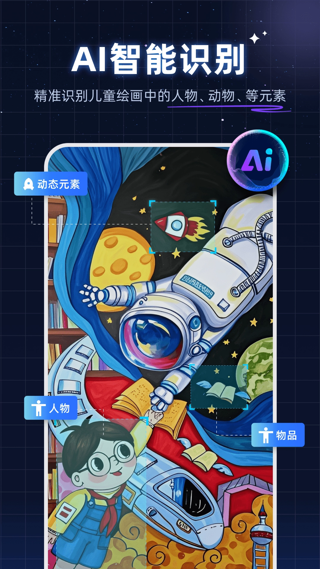 每一笔都能被智能识别,然后转化成生动的动画效果,让静态的绘画作品一下子就鲜活起来,以此激发他们的创作热情。