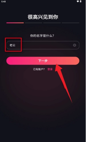 用户先在本站成功安装后,进入后输入名字。