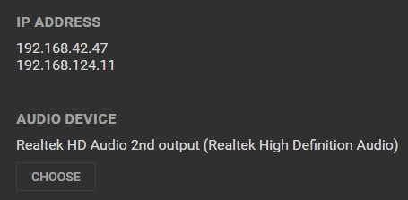 服务端启动后会显示当前IP地址以及一些设置选项,像声卡设备的选择,通常无需进行修改。若要让安卓设备通过WiFi接收音频流,这些设备必须处于同一个本地网络环境中。