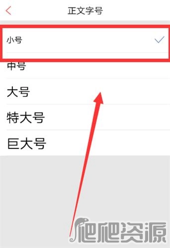 “正文字号”的页面,显示字体为小号。