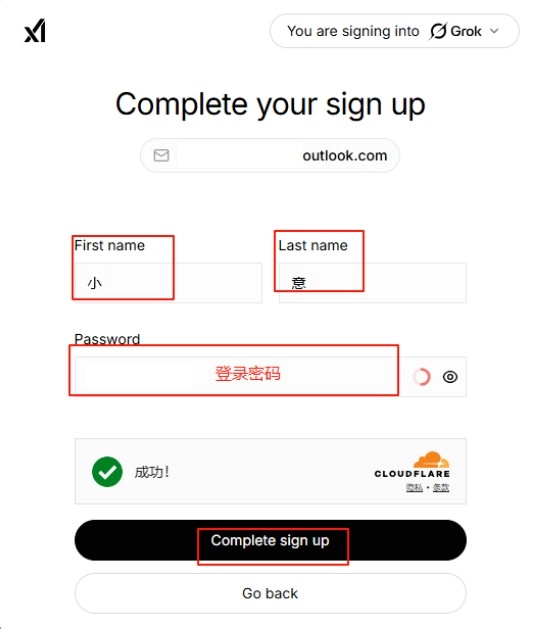 接着填写头像、账号名称,再输入密码,最后点击“Sign up”选项完成注册登录。