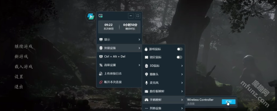 接下来,点击悬浮球并选择“外接设备”选项,随后选择“手柄映射”功能来完成连接的建立。