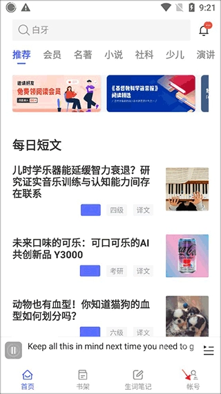 应用会依据用户的英文水平推送地道短文与原著内容,还配备文件导入、单词本学习等功能,以此满足不同用户的学习需求。