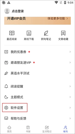 首先我们先进入每日英语阅读,在底部的列表里找到【账号】选项,点击该选项进入账号界面。