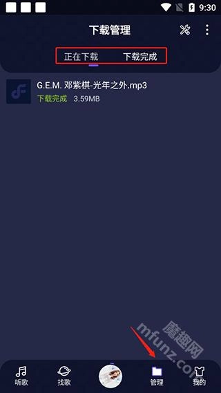而在管理中就可以管理自己所的音乐;