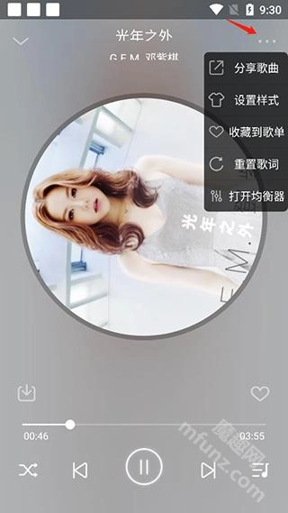 进入播放歌曲的界面还可以设置样式、收藏歌单等等。