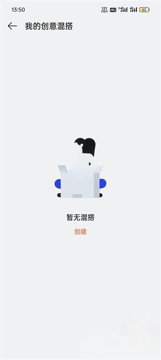点击底部菜单栏里的“我的”选项,进入个人中心页面后,找到“创意混搭”并点击它。