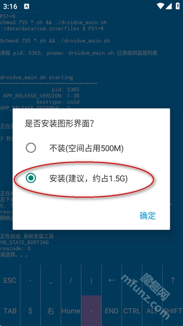 安装图形界面需要1.5g的内存。