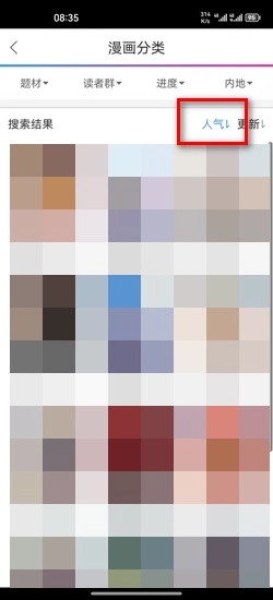 进入这个分类后,点击搜索结果的排序选项,选择【人气】或者【更新】