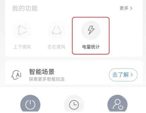 在“我的功能”板块里,您现在应该能找到“电量统计”这一选项,请点击该选项。进入“电量统计”页面后,就能查看空调具体的电量使用详情了。