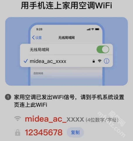 配置WiFi是连接WiFi的必要前提,需输入家庭网络的WiFi密码,这样空调才能顺利接入网络。一旦成功连上WiFi,就可以借助手机上的美的美居APP来远程操控美的空调了。