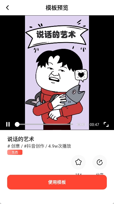 选中模板后进行预览,接着点击【使用模板】按钮,即可进入编辑器开始制作视频。
