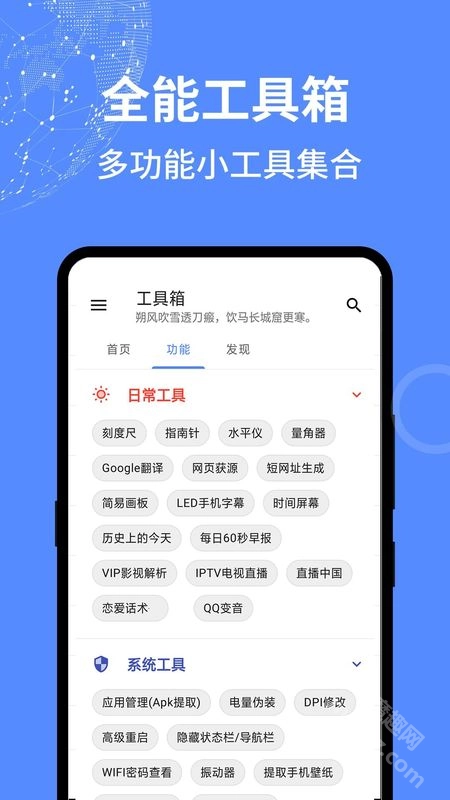 全能工具箱堪称安卓手机玩机与优化的宝藏神器。一方面,它具备垃圾清理、内存优化等实用功能,能有效提升手机运行的流畅度;另一方面,软件还集成了翻译、图片处理、指南针等丰富的生活服务小工具。有了这款全能工具箱最新版本v4.0927.28,日常遇到的各类小问题都能轻松应对!