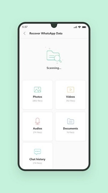 软件智能扫描引擎,可对手机存储设备进行深度扫描,以找回丢失的数据。