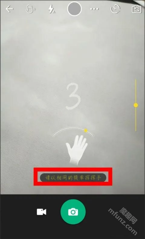 按照屏幕上的文字提示,以相同的频率挥动你的手。