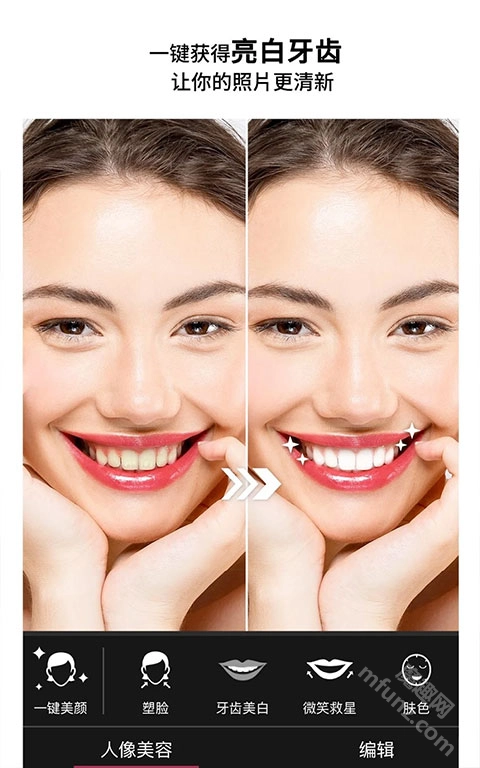 1、丰富美颜功能:涵盖瘦脸、大眼、美白、磨皮等多种美颜选项,助你瞬间提升颜值,定格细腻无瑕的肌肤状态。