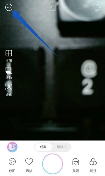 打开甜盐相机后,点击位于顶部的三点图标。