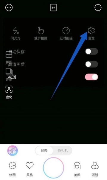 在相机界面的左上角,找到并点击“设置”功能。