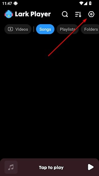 打开Lark Player,点击右上角的螺母按钮