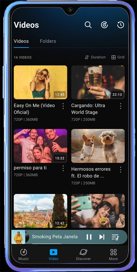在视频板块里能读取手机本地存储的全部视频,大家可以在这里进行简单的音频播放、分享以及整理操作。