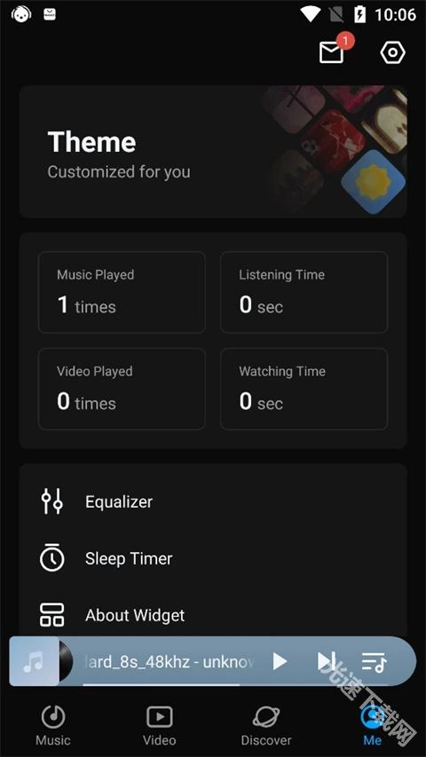 它具备均衡器调节、定时设置、添加至主屏幕等功能,还能统计每日听歌时长与观看视频时长。