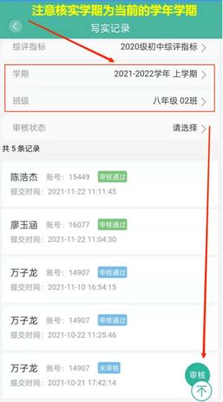 审核学生提交的写实记录