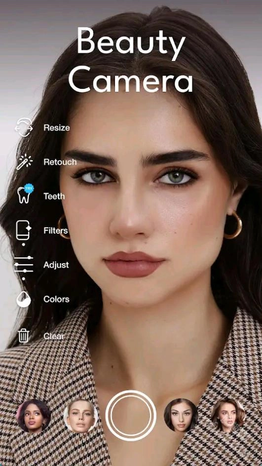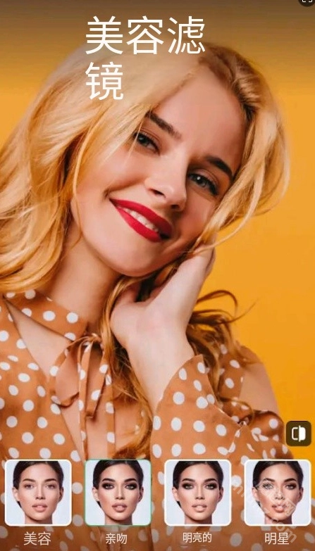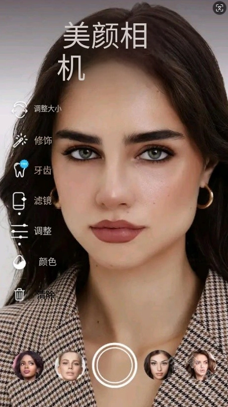 在美颜相机界面,可以看到多个美颜选项: