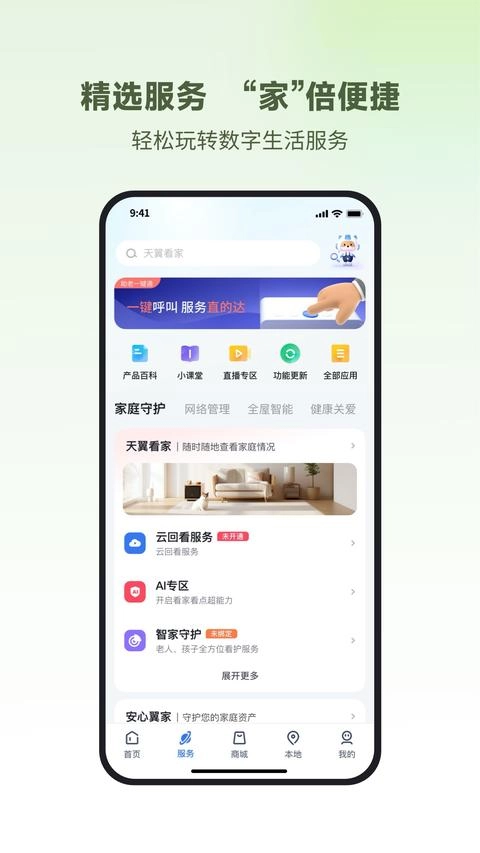 小翼管家监控安装免费手机版是中国电信旗下的智能控制软件,可连接电信设备相关的智能设备,如监控摄像头、路由器、可视门铃、传感器等!只要您家中使用的是电信设备,就能通过这款手机应用轻松掌控一切!作为一款多屏互动的手机客户端,它具备强大的家居智能控制功能,由中国电信打造,能让您和家人在看电视时更便捷,手机分屏操作,互动乐趣更多,现在就来体验吧!有需要的小伙伴,快来点击试试!