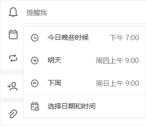 先点击“提醒我”,接着选择具体的提醒时间:可以是今天晚些时候、明天、下周,也能自行设定日期和时间。