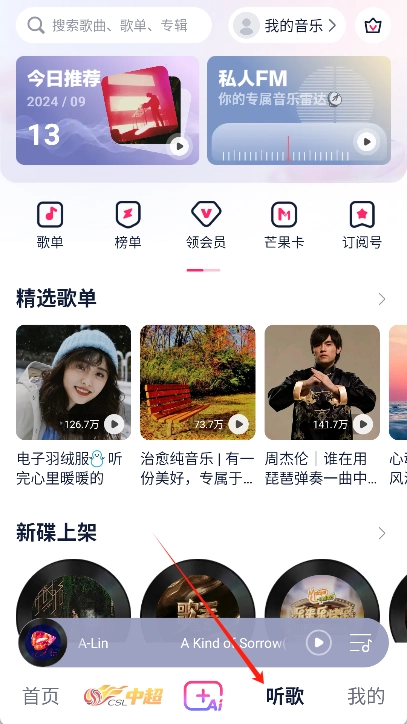 【热门推荐】在“我喜欢的”里开启听荐模式,AI推荐的歌曲就能更贴合你的心意啦;