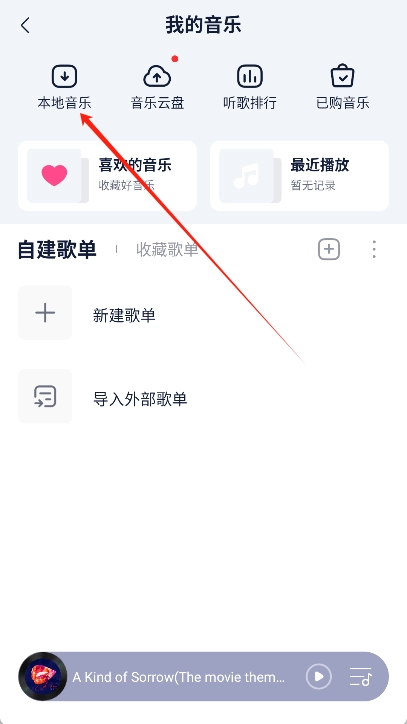 用户还能点击“我的音乐”,借助扫描本地歌曲的功能,把手机里的音乐文件导入软件进行管理。