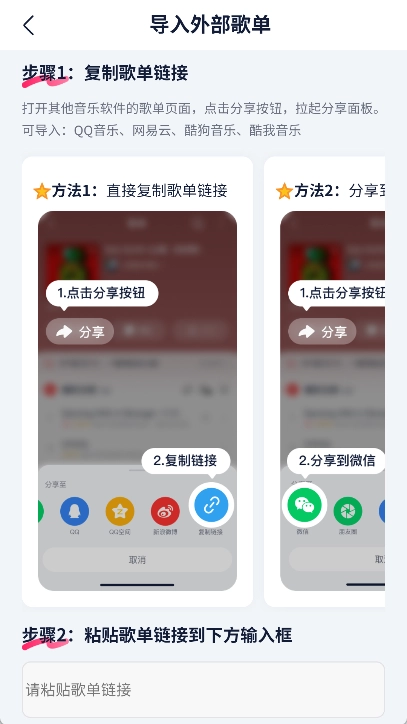 此外,你还能把专辑分享至社交媒体,也可以借助导入外部歌单的功能,将其他音乐平台的歌单导入到这款软件里。