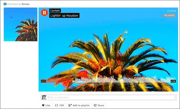 即便订阅了SoundCloud Go,推广歌曲依旧可能出现。以下是推广曲目在你的流中呈现样子的示例: