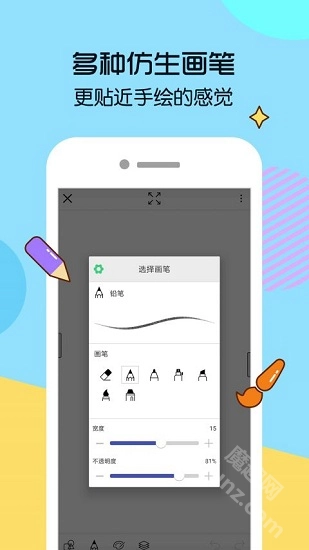 软件了丰富多样的笔刷,同时支持用户自行定制画笔,打造专属于自己的独特笔刷效果。