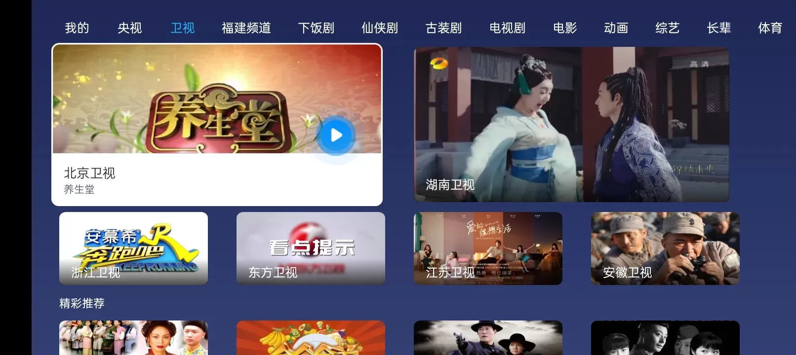 界面上方显示各种分类,下面则是块状的节目预览。