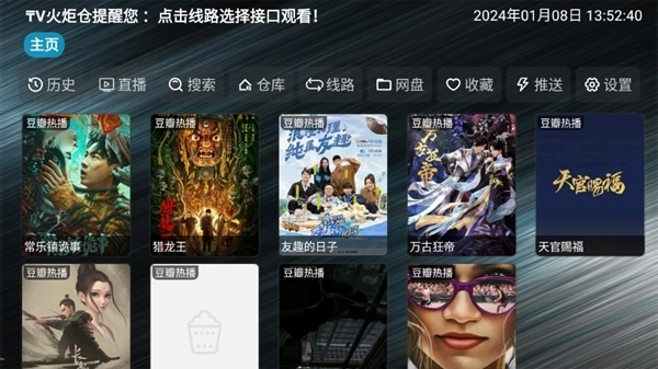TV火炬仓是一款支持自定义配置仓库地址的开源安卓电视盒子。其最新版本的界面与小苹果影视盒子颇为相似,功能方面也相差无几,打开后即可直接观看视频,无需注册或登录账号。把TV火炬仓安卓版安装到电视上,就能免费观看各类优质影视内容,涵盖视频点播和直播两种模式,还能自由切换多条线路!