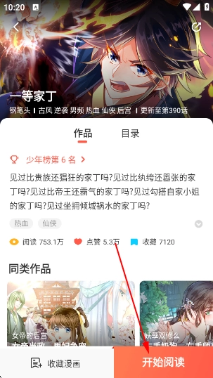 点开想看的漫画,进入详情页面,点击“开始阅读”。